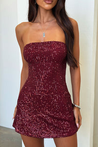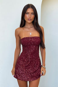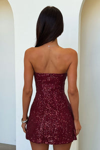 Arletta Strapless Sequin Mini Dress - Wine