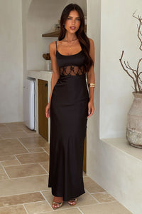 Slip into luxury with the Azaria Maxi Dress! She offers sheer lace front detailing, a flowy full length fit, double lined material, adjustable straps and an invisible side zipper. We love this paired with nude heels and gold accessories!