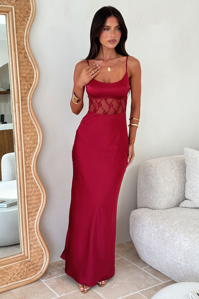 Slip into luxury with the Azaria Maxi Dress! She offers sheer lace front detailing, a flowy full length fit, double lined material, adjustable straps and an invisible side zipper. We love this paired with nude heels and gold accessories!