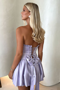 Indulge in luxury with our Beauty Dress, made from silky smooth material for maximum comfort. The playful bubble style adds a touch of fun. With boning for support and a delicate bow, this mini dress is finished with a lace-up and tie back for a touch of elegance. Complete the look with simple heels and your gold jewellery!