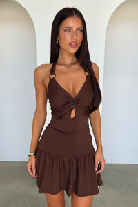 Briony Halter Neck Mini Dress - Brown