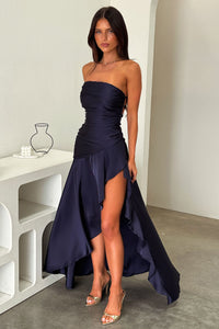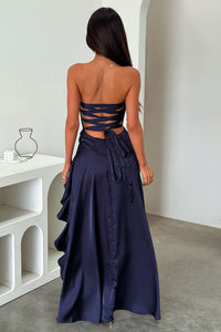 Carly Strapless Satin Maxi Dress - Navy