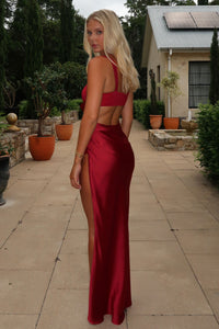 Christa Satin Maxi Dress - Burgundy