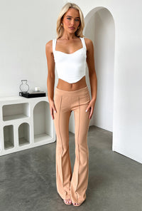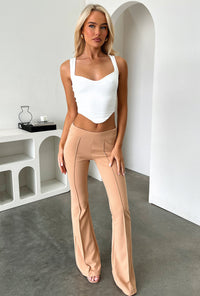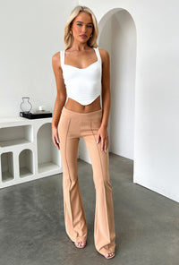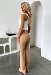 Baby she's a basic! Offering a flared bottom, lining down the front, mid rise fit, an invisible side zipper and a supper flattering fit. She'd go perfect paired with a white long sleeve crop, nude heels and a nude lip.