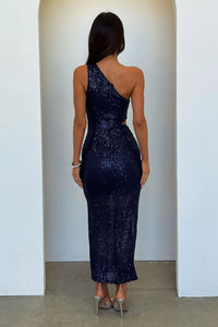Dura One Shoulder Sequin Midi Dress - Navy