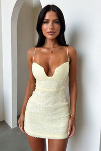 Get ready to shine in the Grande Mini Dress! This a-line mini dress features shimmering sequins and bust padding for a flattering fit. Equipped with thin adjustable shoulder straps and a strappy back tie up, this dress is both stylish and comfortable. Complete the look with heels and gold jewellery!