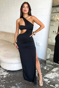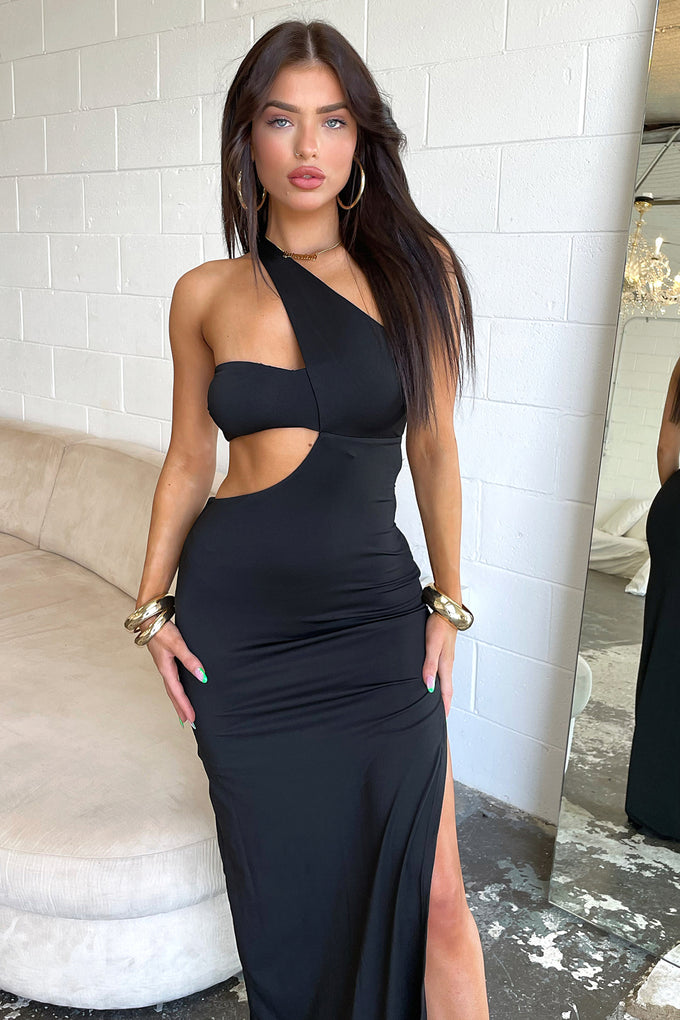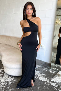 hello gorgeous! The Inika Maxi offers a cheeky side slit, a one shoulder strap with a bandeau style band, a cut out design along the side of the waistline, double lined material and an invisible back zipper. Pair her with Black heels and some wavy curls for an angelic look.