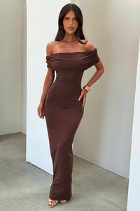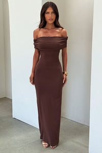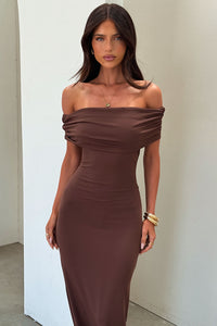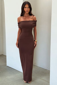 Turn heads this summer in the Jackie Off-Shoulder Maxi Dress! This maxi features a daring open back and bodycon silhouette that hugs in all the right places. Crafted from soft, stretchy fabric with hidden silicone tape at the neckline to keep you secure all night, it's the ultimate dress-up-or-down piece. Pair with black heels and gold jewellery for an effortlessly chic look that works from sunset cocktails to late-night dancing!