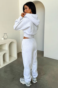 Stay comfy and stylish in the Kaztek Cropped Jacket. Its soft material and long sleeves make it perfect for lounging, while the embroidered TSF logo and silver zip add playful details. With a hood and cropped fit, it pairs perfectly with the Kaztek low rise sweatpants and ugg boots.
