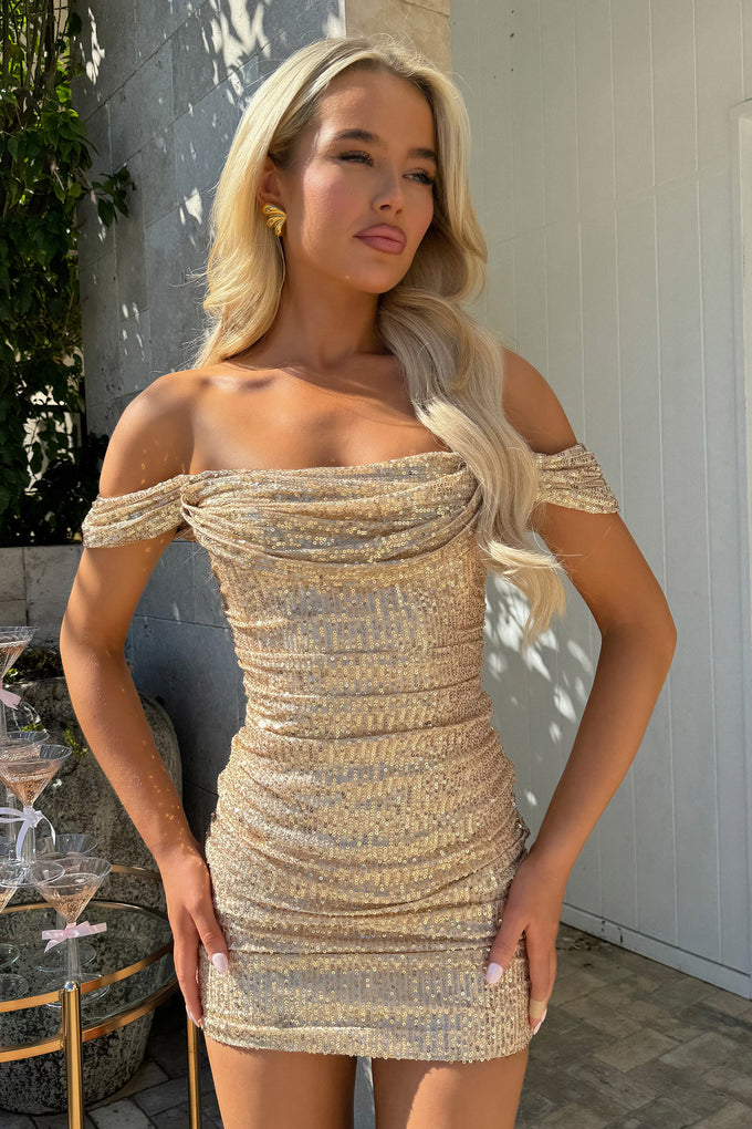 Nara Off Shoulder Sequin Mini Dress - Champagne