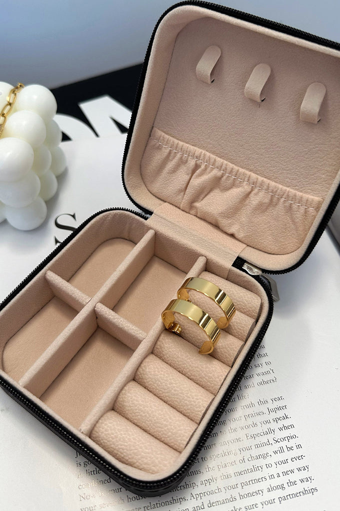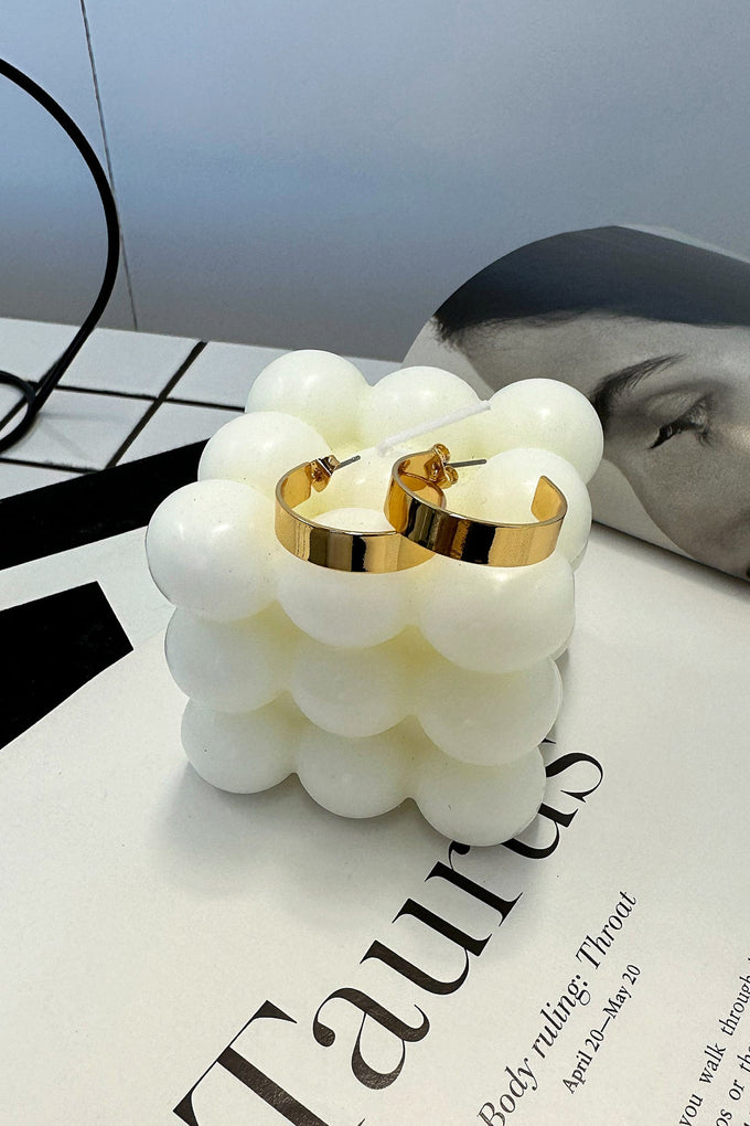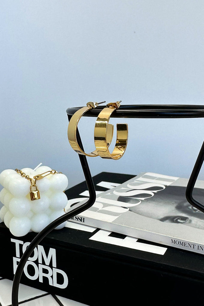 An essential hoop to add to your collection! She offers a flat hoop style with a hinged back closure. Match with other gold jewellery for an everyday basic look.