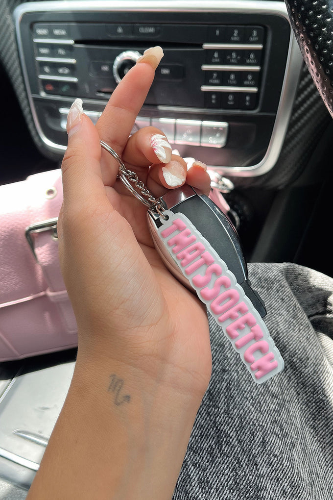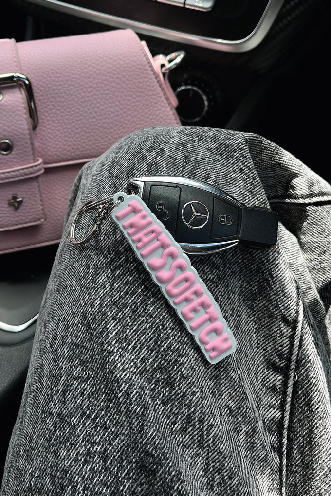 Introducing the TSF Rowan Keychain, our first ever keychain designed with THATSSOFETCH bubble writing. Keep your car keys, backpack, or suitcase stylish with this fun and colorful accessory. Available in various colors, it's the perfect addition to anyone's collection!