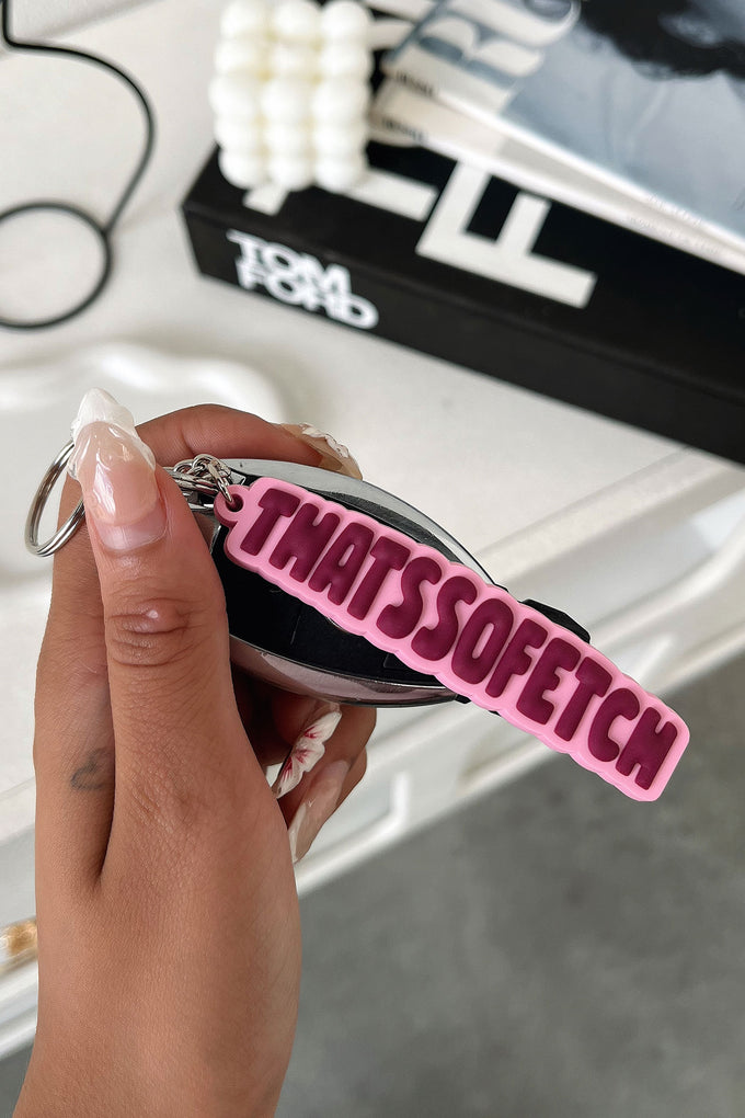 Introducing the TSF Rowan Keychain, our first ever keychain designed with THATSSOFETCH bubble writing. Keep your car keys, backpack, or suitcase stylish with this fun and colorful accessory. Available in various colors, it's the perfect addition to anyone's collection!