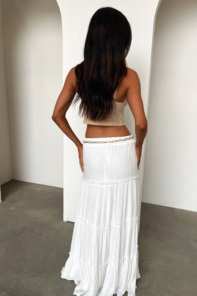 The Samiha Top is a summer must-have! Showcasing adjustable straps, double lined busts, and a tie-up front. The delicate floral embroidery and playful ruffle detailing add a touch of whimsy. She's perfect for a summers night out styled with a simple mini skirt and some strappy heels!