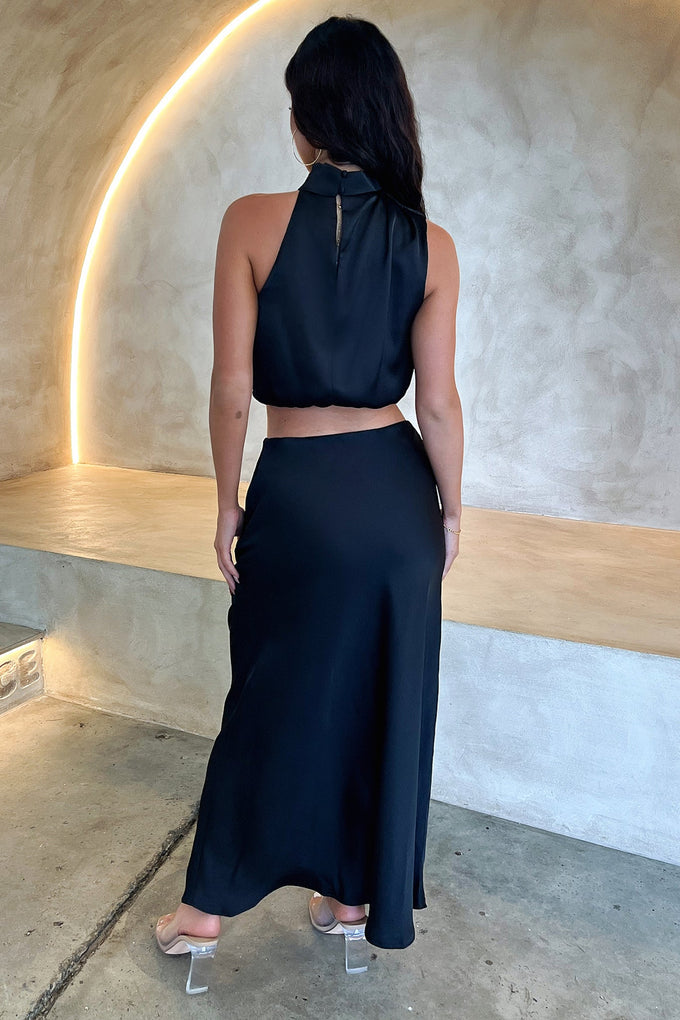 You need this hunny rn! This Gorgeous lil maxi, features a silky finish, a flowy fit and an invisible side zipper. Style her with the matching top and Black Stilettos for a classy look.