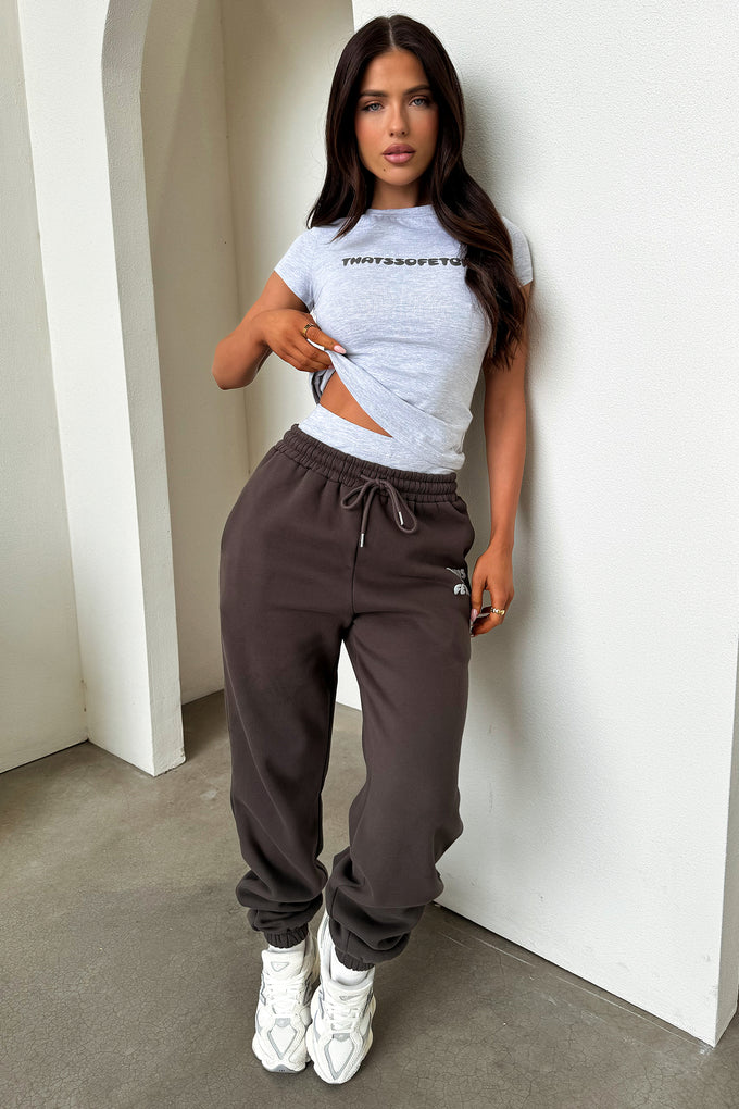 Cute and comfy in the Series 3 Sweatpants. This babe offers a soft fleeced inside, elasticated waistband with drawstrings, cuffed ankles and a puffed 'THATSSOFETCH' logo. Pair her with the matching hoodie and sneakers for an off duty cool girl look.