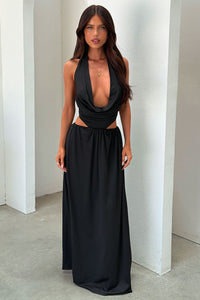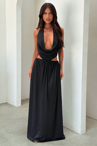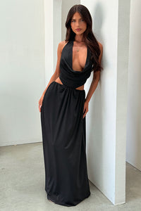 Soraya Plunge Halter Neck Maxi Dress - Black