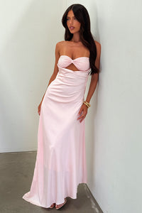 Thora Strapless Satin Maxi Dress - Baby Pink