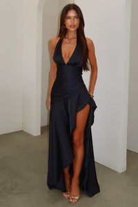 Wrenly V-Neck Satin Maxi Dress - Navy