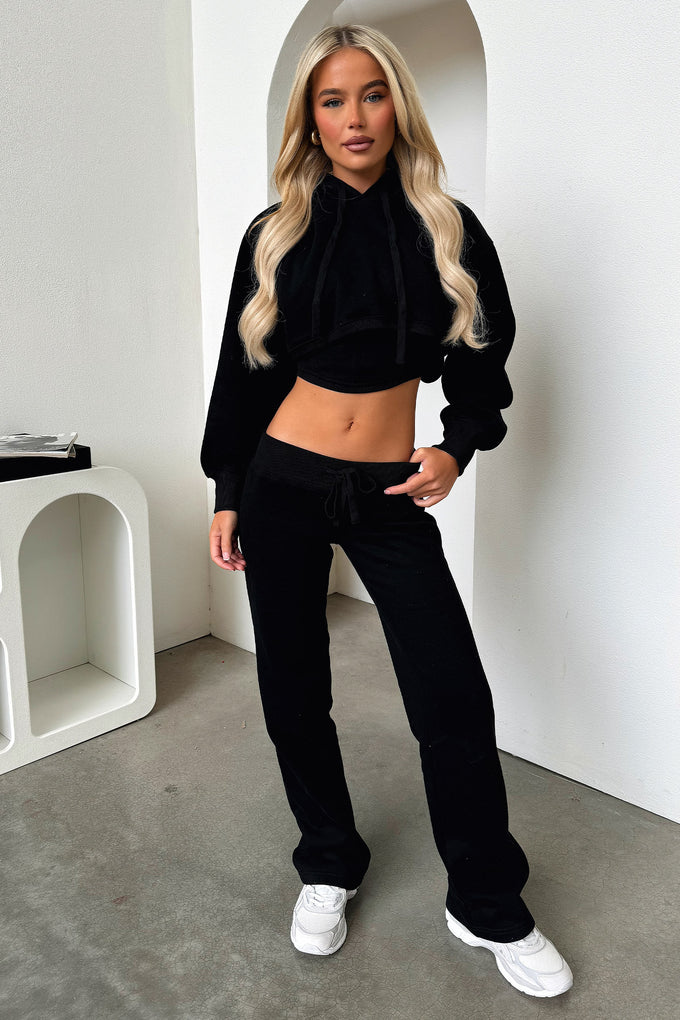 Meet your new go-to for casual and cool style. Our Zaina Cropped Hoodie features a slouchy and super cropped fit, and hood drawstrings for added style. Pair it with our Zaina Top and Low Rise Sweatpants for a complete and effortless look. Upgrade your casual wardrobe now!